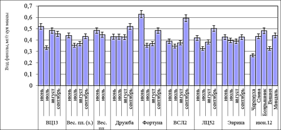 Фортуна, ВСЛ2, ЛЦ52, Эврика) отмечается тенденция накопления фенольных
