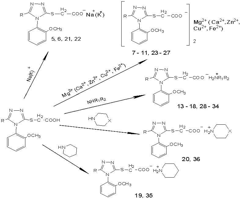 2-(5-R-4-(2-метоксифеніл)-1,2,4-тріазол-3-ілтіо)ацетатні