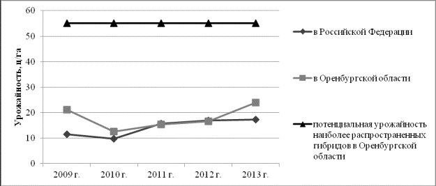 результате нарушения культуры землепользования урожайность не достигает потенциально возможных значений (рисунок