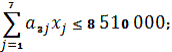 – трудоемкость производства, чел./ч; j = 1,…,7.