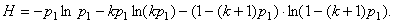 Нехай р(q2)=kр(q1), р2=kр1, тобто ймовірність стану q2 в k разів більша, отже функція Н має вид:![]()