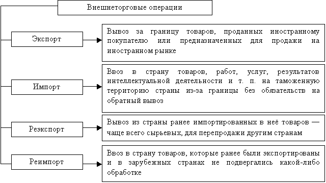 операции, прежде всего, классифицируются на экспорт, импорт, реэкспорт, реимпорт (Рисунок 1).