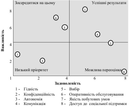 задоволеності певним явищем з його важливістю для досліджуваної групи.