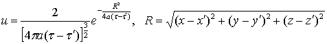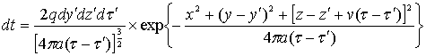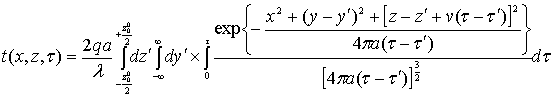 источника тепла Q, причем dQ = qdy'gz'dτ, то элементарное повышение температуры