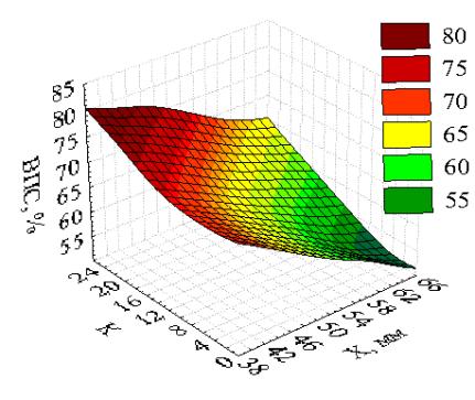 размеров частиц Х и увеличении коэффициента неровности частиц К.