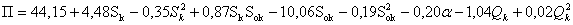 Рисунок 1 - Моделирование прочности окатышей n = f (Sk,