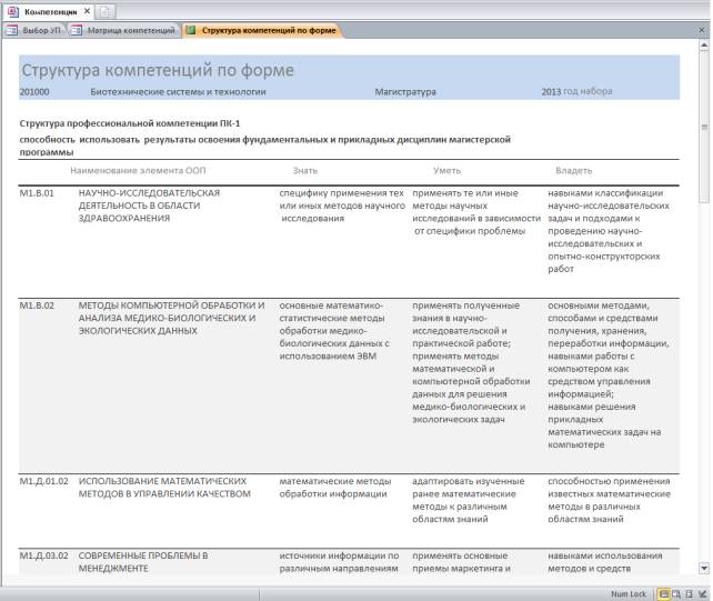 элементов компетенций, на рисунке 2 – отчет по структуре компетенций.