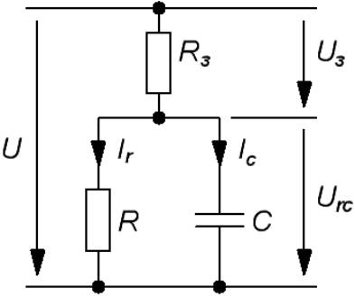 у тому, що в послідовному колі, яке складається зі зразкового опору і ємнісного