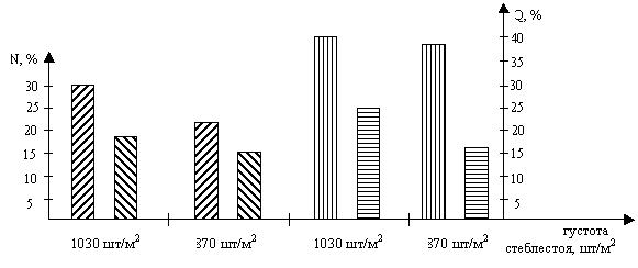 % – поврежденных стеблей и Q, % – перекошенных стеблей при условии