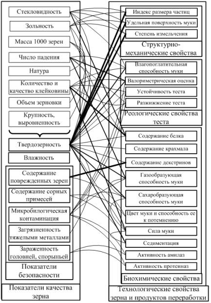 показателей качества зерна и зернопродуктов. В частности, выявлены связи