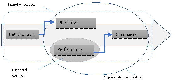 If in the basis of project risks lays a choice of method of their determination with a following identification of the risk’s quantitative and qualitative characteristics thus the basis of their monitoring is a control. In whole according to the projects there are three types of control are performed which let appreciate the efficiency of realization of an investigated project: targeted, organizational and financial.