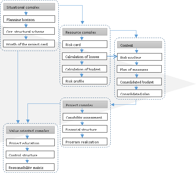 The plan of measures is developed in order to manage every type of risks according to prediction made. These plans should contain the measures of required availability principle taking in mind that from one side the resources of the enterprise are limited and from the other it is necessary to provide a quite reliable effective project risk management. Under the resources lack exactly this prediction technique of long-term project realization risks constituent should be corrected first of all excluding the secondary measures of risk management.