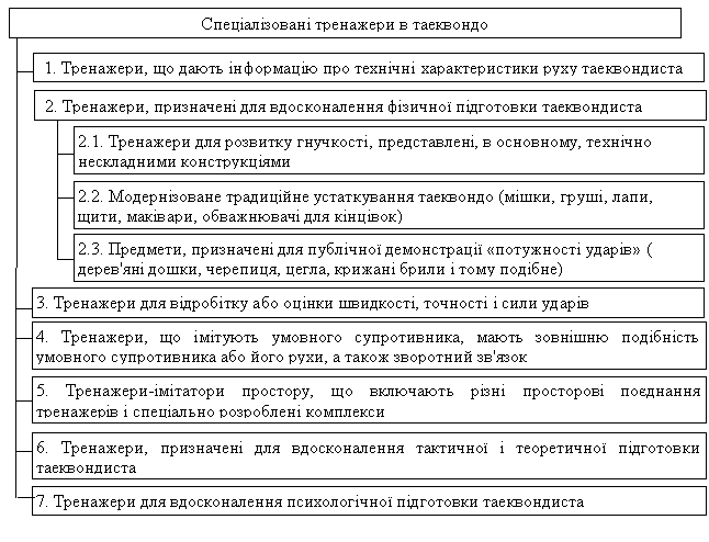 Нами розроблена наступна класифікація спеціалізованих тренажерів в таеквондо (рис. 1).