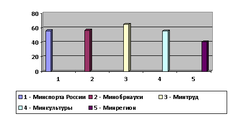 64,8, Минкультуры – 55,7, Минрегиона – 40,8) [2] (рисунок 1).