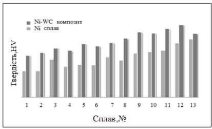 твердості матриці нікелевого сплаву і Ni-WC композиційного покриття