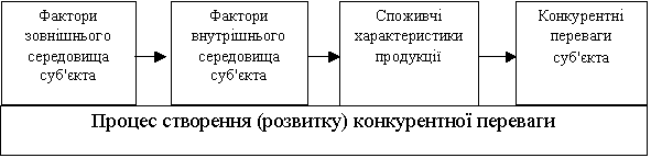 господарюючому суб'єкту, але й виробленій ним продукції (товару, послузі); джерело виникнення конкурентної переваги може бути в будь-якій сфері діяльності суб'єкта; реальні конкурентні