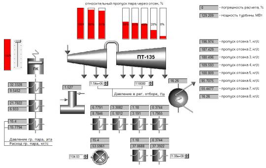 отображая числовые значения прочих параметров паротурбинной установки, мы можем