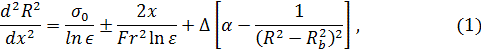В роботі [5] одержано відповідне рівняння для радіуса R(x) при наявності сили тяжіння: