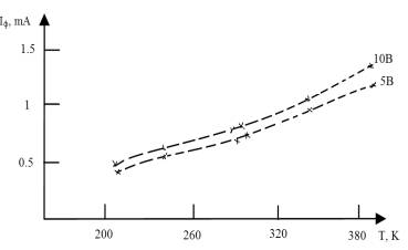 График зависимости первичного фототока от температуры р-п перехода «карман-подложка»