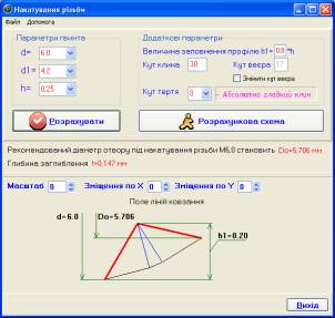 For calculating of lead hole for thread, propose program for visualization of the plastic