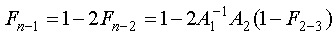 then, accounting the closure rule Fn-1 + Fn-2 + Fn-3 = 1 and Fn-2 = Fn-3, and from (7) we