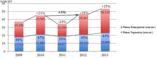 (вагою до 30 кг) України в цілому за 2009-2013 рр. Зміна ринку