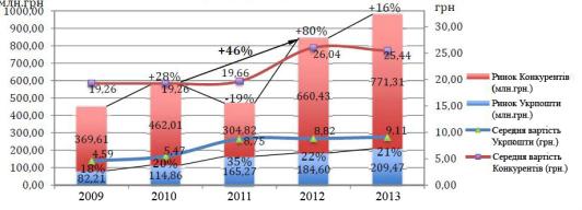 конкурентів. Це пояснює зростання частки Укрпошти в період кризи;