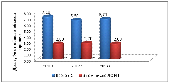 О широкой популярности сердечнососудистых ЛС, в том числе растительных, свидетельствуют данные аптечных продаж (в % к общему объему продаж), представленные на рисунке 1.