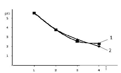 увеличением i происходит уменьшение величин рКi, что, вероятно, связано со стерическими препятствиями