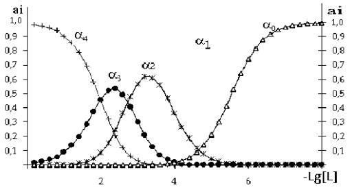 α0-[Cu(H2O)6]; α1-[CuL(H2O)5]+; α2-[CuL2(H2O)4]2+; α3-[CuL3(H2O)3]3+; α4-[CuL4(H2O)2]4+: