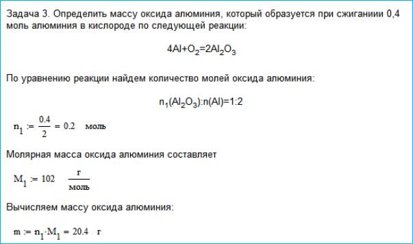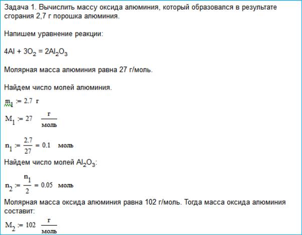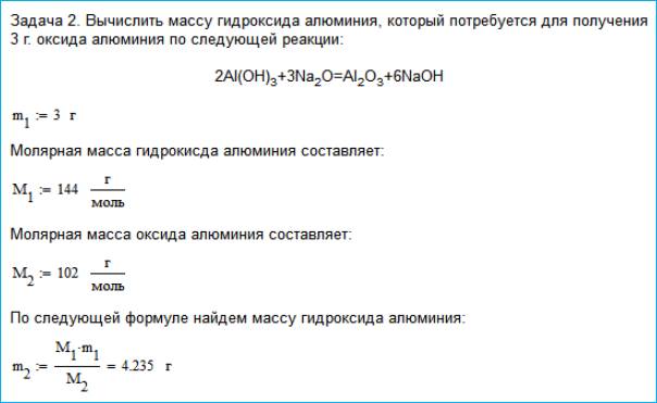 аналитических решений, например определение массы оксида алюминия при сжигании