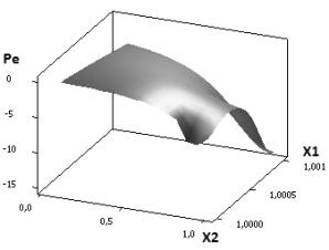 и 3D графики Ре при Х1 = 1…0,1, Х2 =