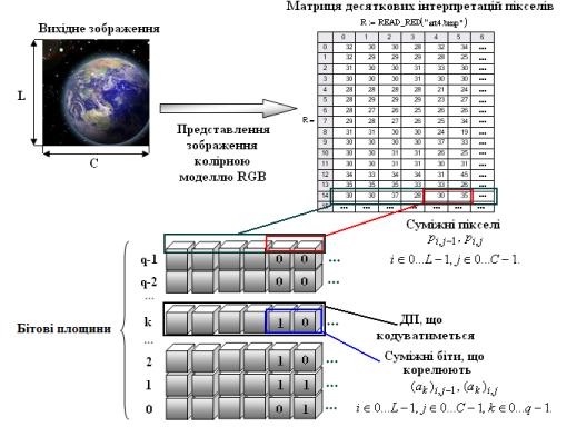 кореляцію пікселів у ДП у складі бітового шару зображення. Оскільки для