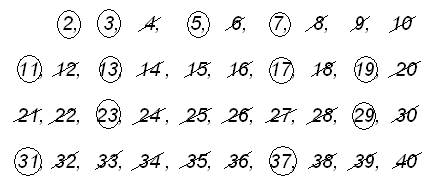 Сонда кестеде 40-тан кіші жай сандар ғана қалады. Демек,