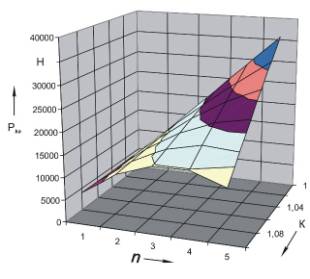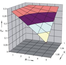 МКМ от количества ведущих мостов n и кинематического несоответствия К