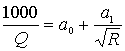Залежність h(R) в логарифмічних координатах y=ln(h/rк) та х=ln(1/R) є лінійною у=а2х+b2,