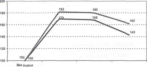 технологии «мяса в мясо» на выход готового продукта можно проследить по рисунку 1.