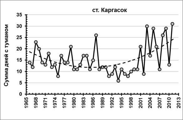 станции Средний Васюган. Рассмотрение сезонного хода туманов показало, что для территории Томской
