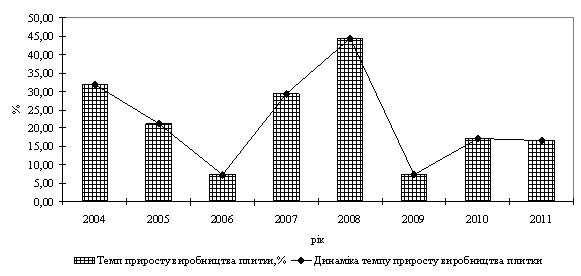 в Україні плитки збільшилося на 17,16% у порівнянні з 2009 роком, а в 2011 році