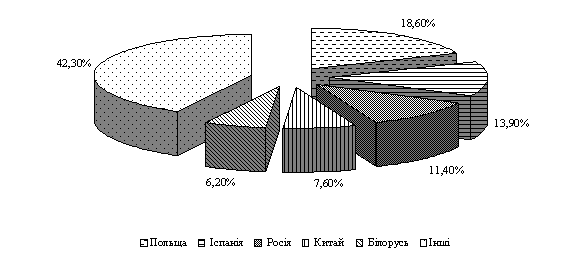 змінюється протягом останніх років - це Польща, Іспанія, Росія. Китай продовжує нарощувати обсяги імпорту в Україну, що підтверджується