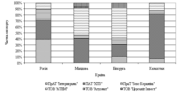 постачань керамічної плитки до іноземних країн. Також несуттєво скоротили свої частки ТОВ «АТЕМ»