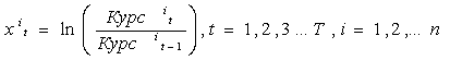 – значення курсу i–ої валюти в t вимірі;