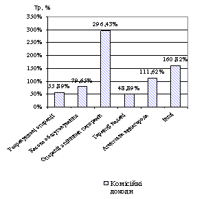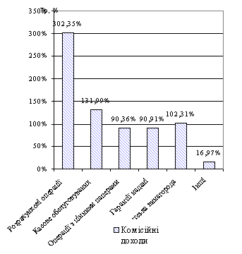 комісійних доходів видно, що спостерігається збільшення прибутку за комісійними