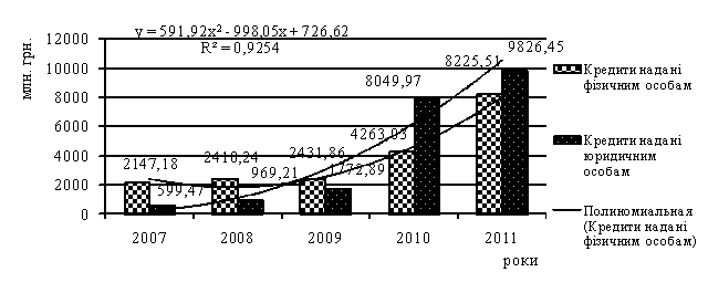 2007-2011 рр. Подібна тенденція спостерігається за динамікою обсягу наданих