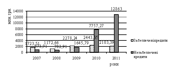 тенденція спостерігається і в 2011 році, проте обсяг незабезпечених кредитів в