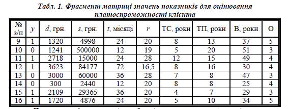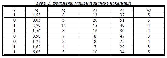 Підготовлені дані, фрагмент яких подано в табл. 2, будемо