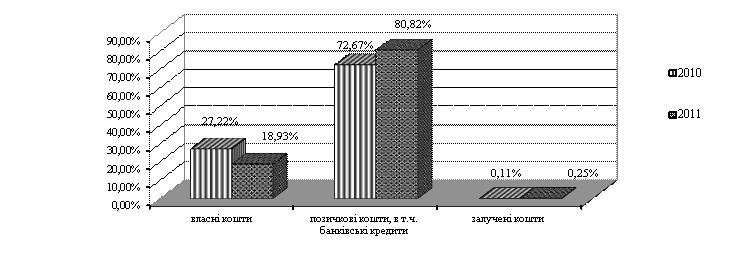 1. Структура джерел фінансування лізингових операцій [2]