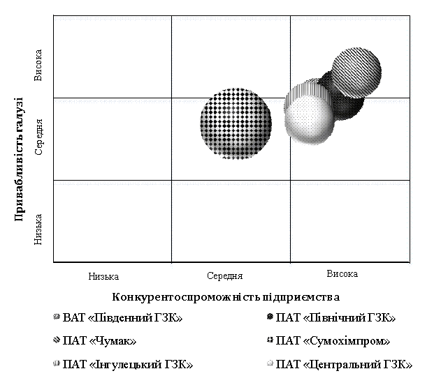 Рис. 1. Матриця портфельного аналізу GE/McKinsey для обраних підприємств