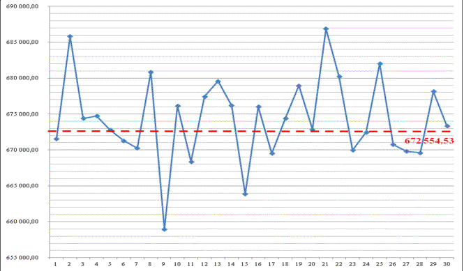 Отже, дотримуючись алгорітму імітаційного моделювання,
