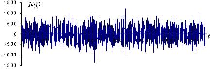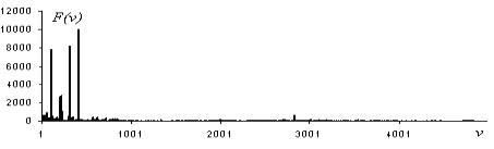 спектр шума F(v) , вычисленный быстрым преобразованием Фурье функции N(t).